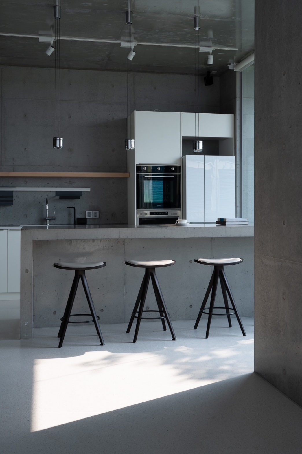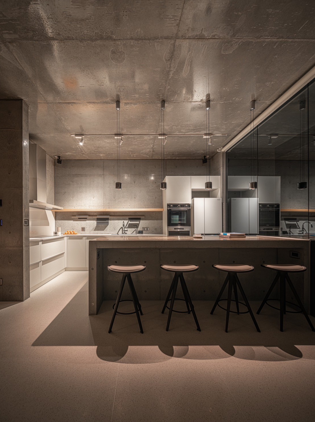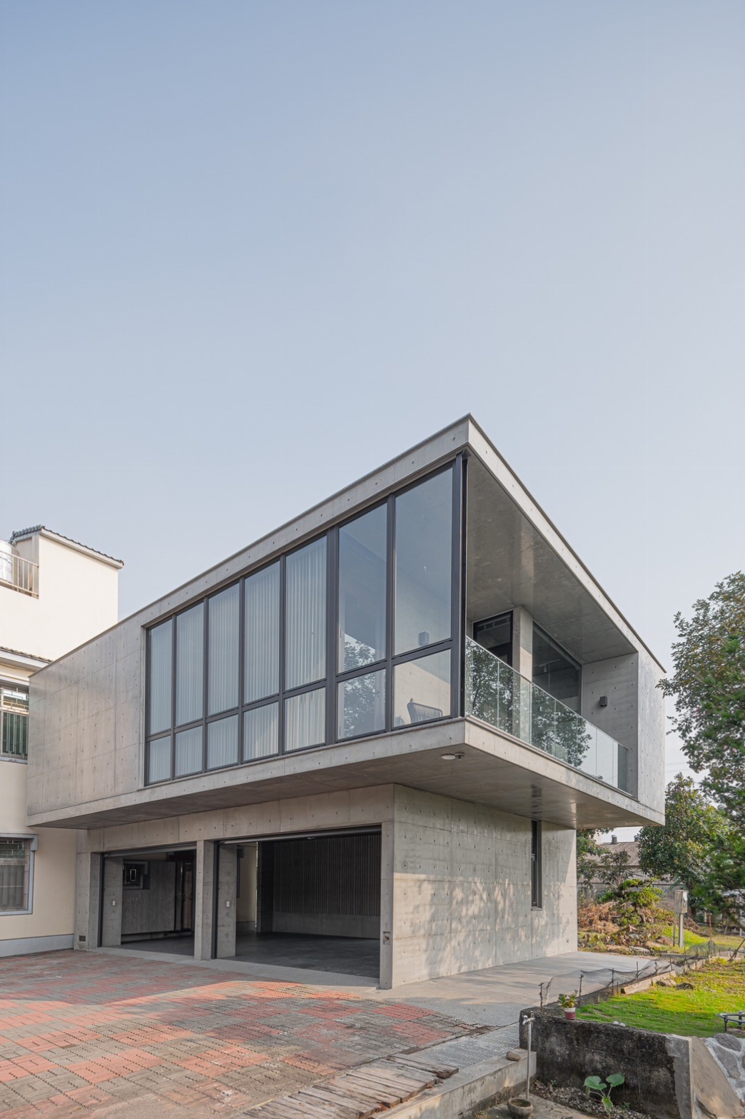 此案全棟採取清⽔模建築⼯法,將混凝⼟的粗糙轉化為溫潤質樸的肌理、呈現出渾然天成的極簡美學。