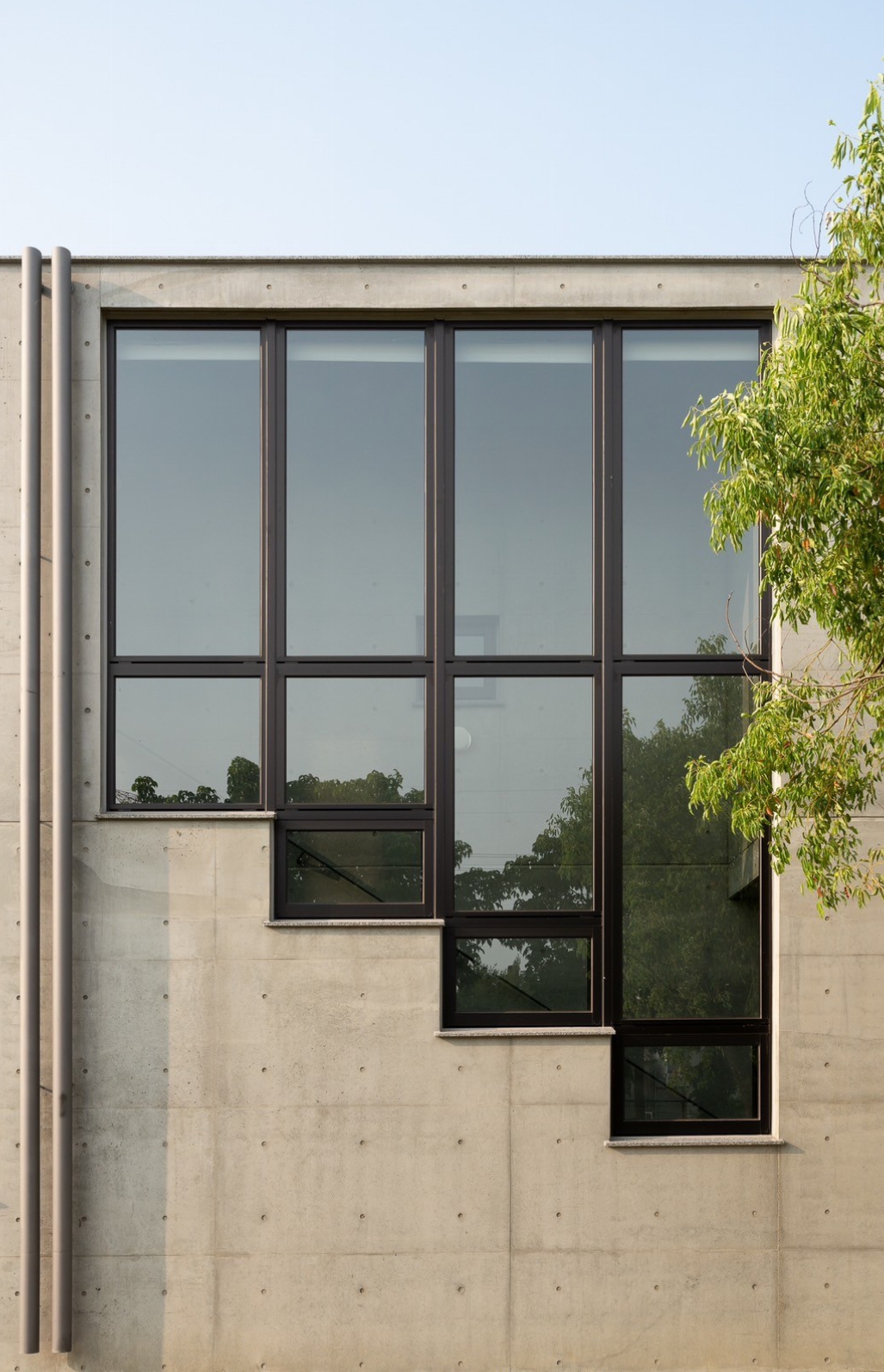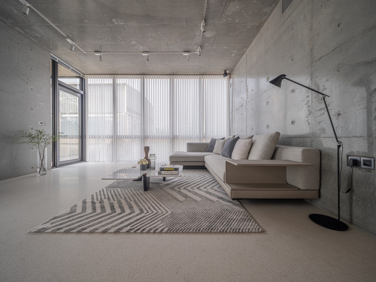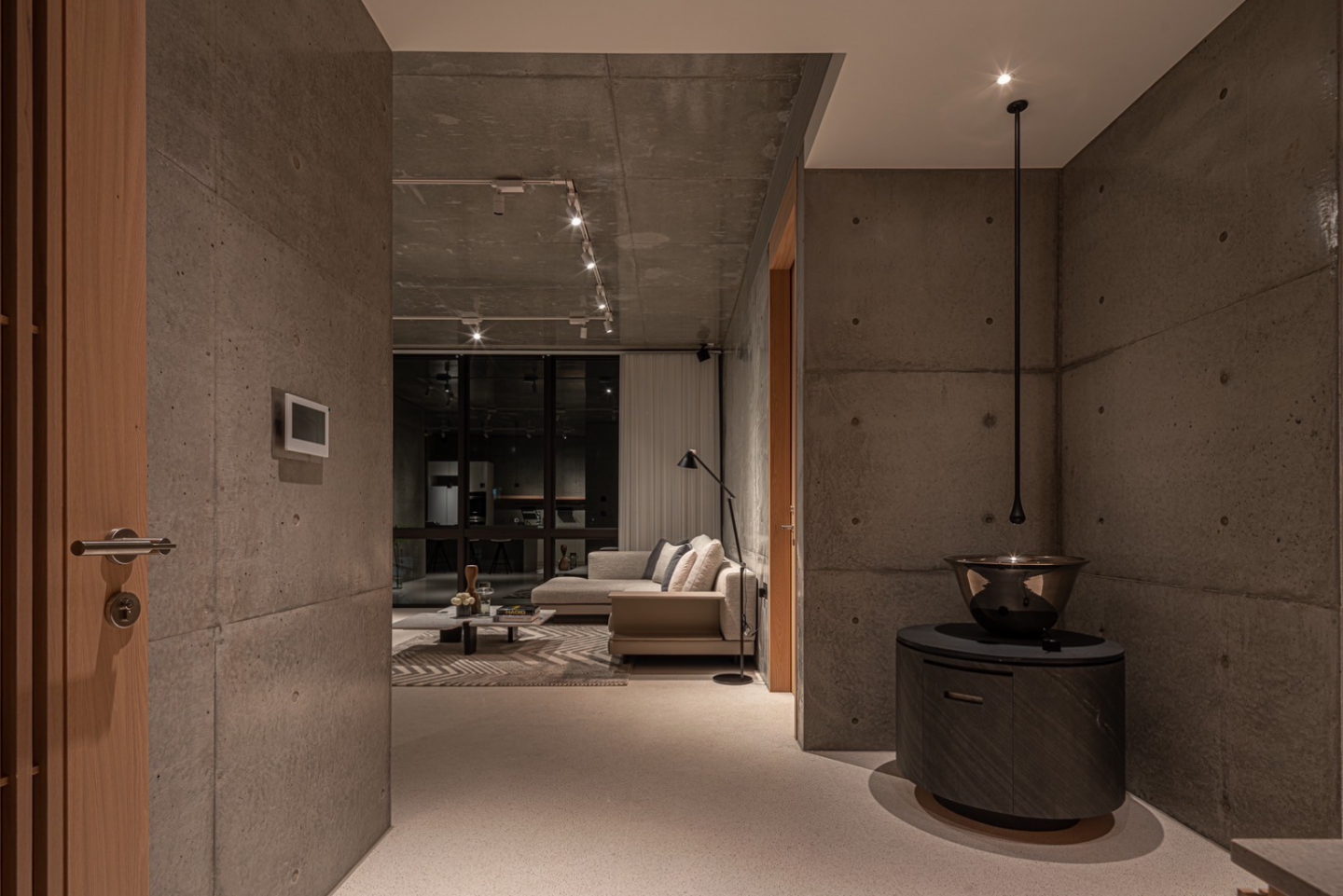 此案全棟採取清⽔模建築⼯法,將混凝⼟的粗糙轉化為溫潤質樸的肌理、呈現出渾然天成的極簡美學。