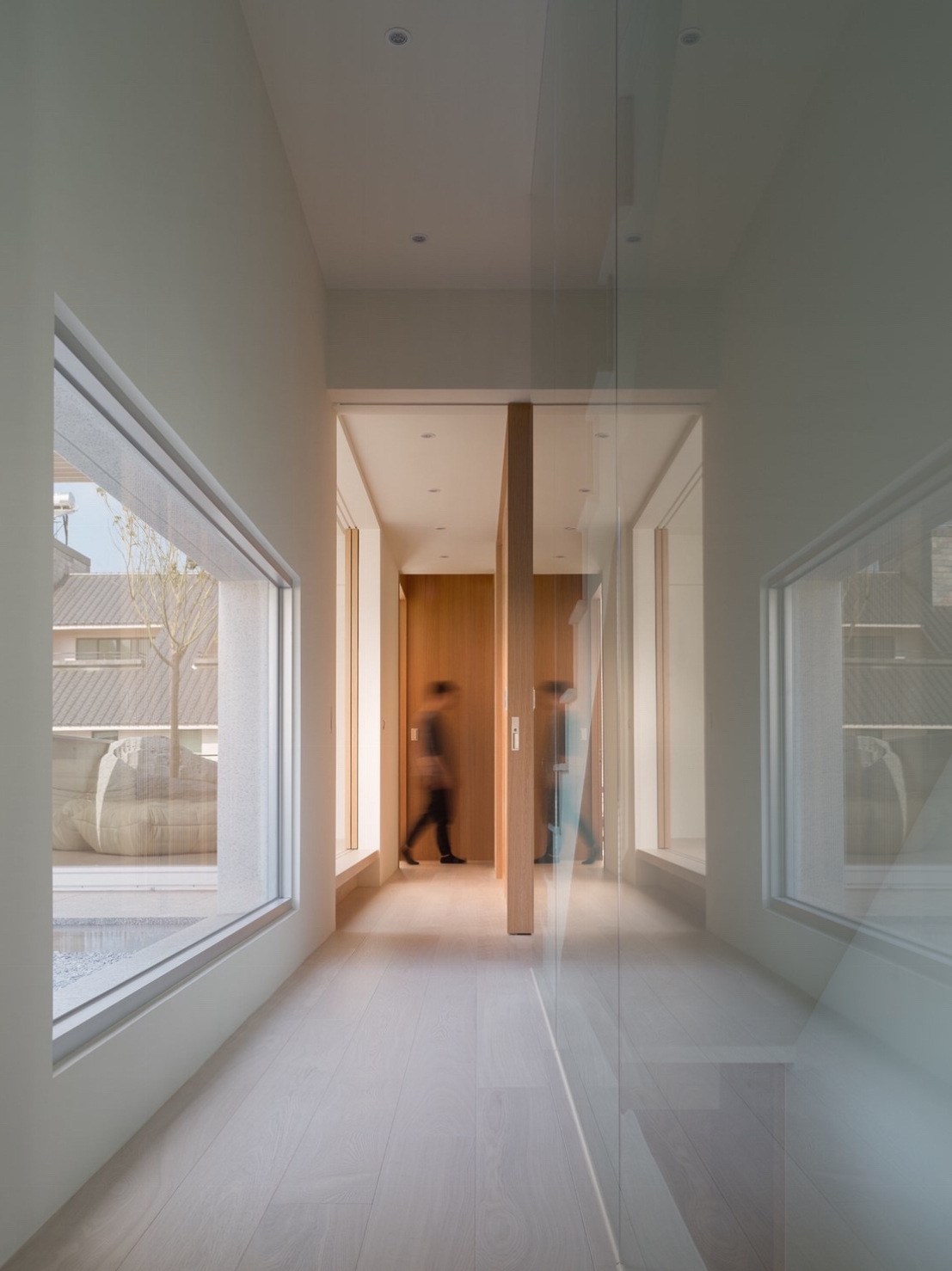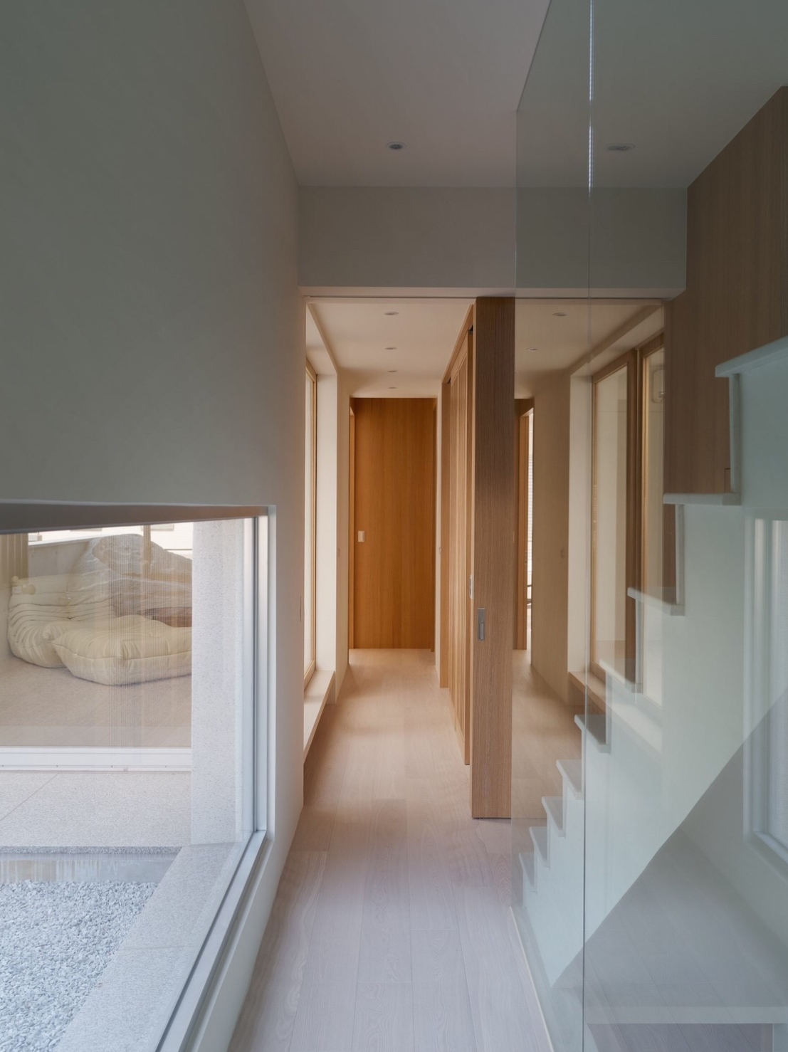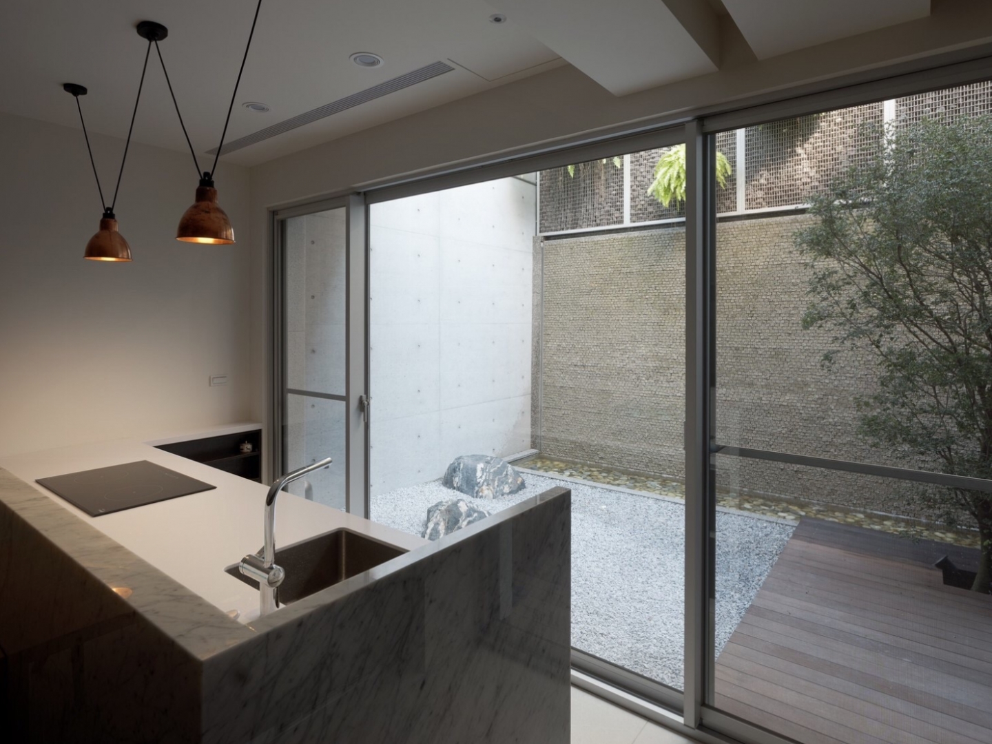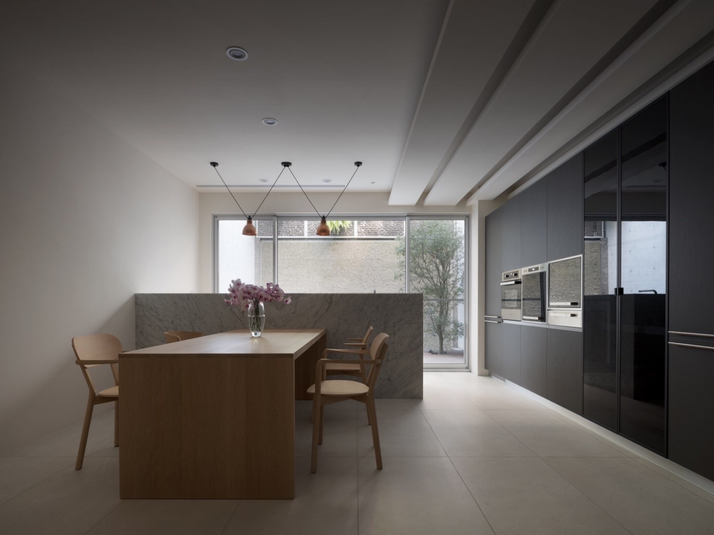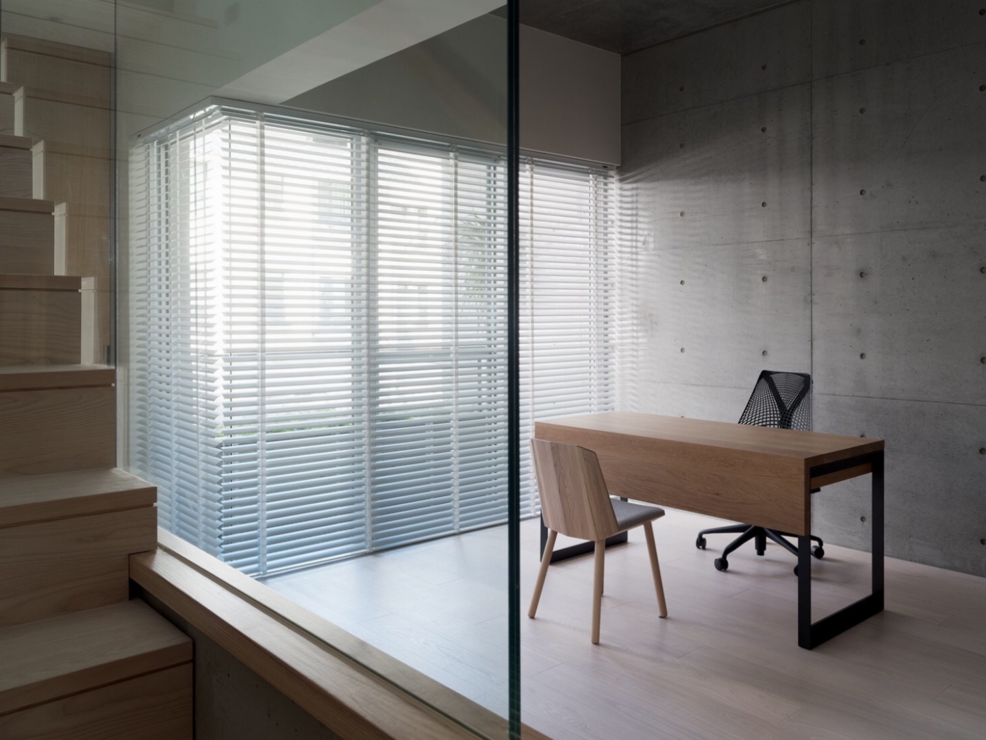 這是一位單身男子的住宅,從買地到建屋逐漸堆疊出他夢想中的家,簡單的設計、簡單的生活,是他對此住宅的要求,因此在空間的設計上採取垂直高度的拉伸及水平方向的穿透來拉寬視野,並運用植物的綠意及水流聲,呈現輕鬆的氛圍,用卵石及鐵網作為阻隔鄰房的圍牆,不僅自然通風良好亦可保有隱私,更是植物最佳的背景,自然的光線引進室內,產生不同光影,讓空間更具情境。